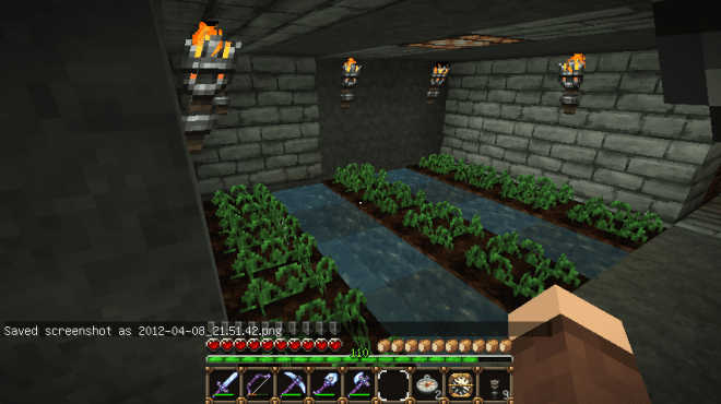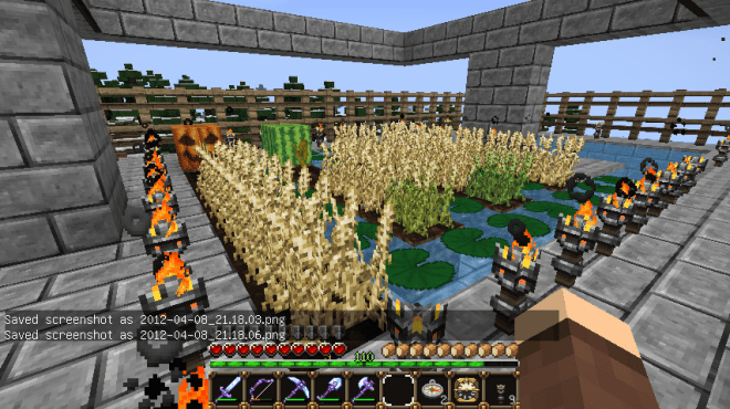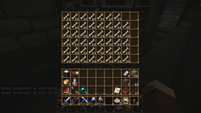 因為親手殺怪物耗很多體力,這里當然是有小麥田的~直接播種後撒上骨粉,想做多少麵包就做多少。XD(所以家裡的田基本不用了)