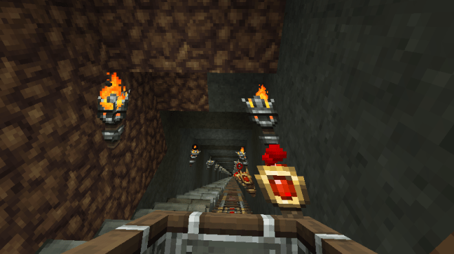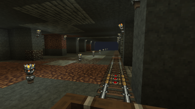 其實造這個鐵道系統的目的並不只是為了下去時可以偷懶不用走路,當初的設計目的是在地下採石時物品欄放滿後,將採到的東西都放到運輸礦車裡,發車讓礦車回到地面,然後觸發另一輛裝了十字鎬的礦車下來。不過到了後期基本很少採石,就沒怎麼用過。