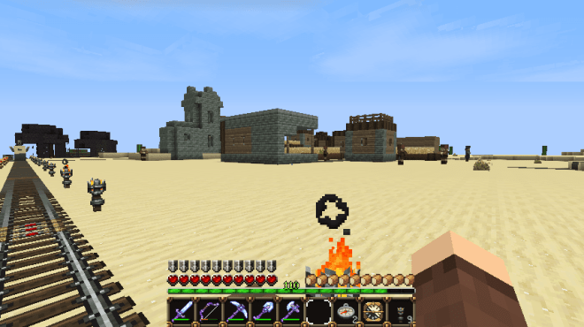 這條鐵路線是通向NPC村莊,一共發現了兩個村莊,我就選了較大的一個用鐵路連接。