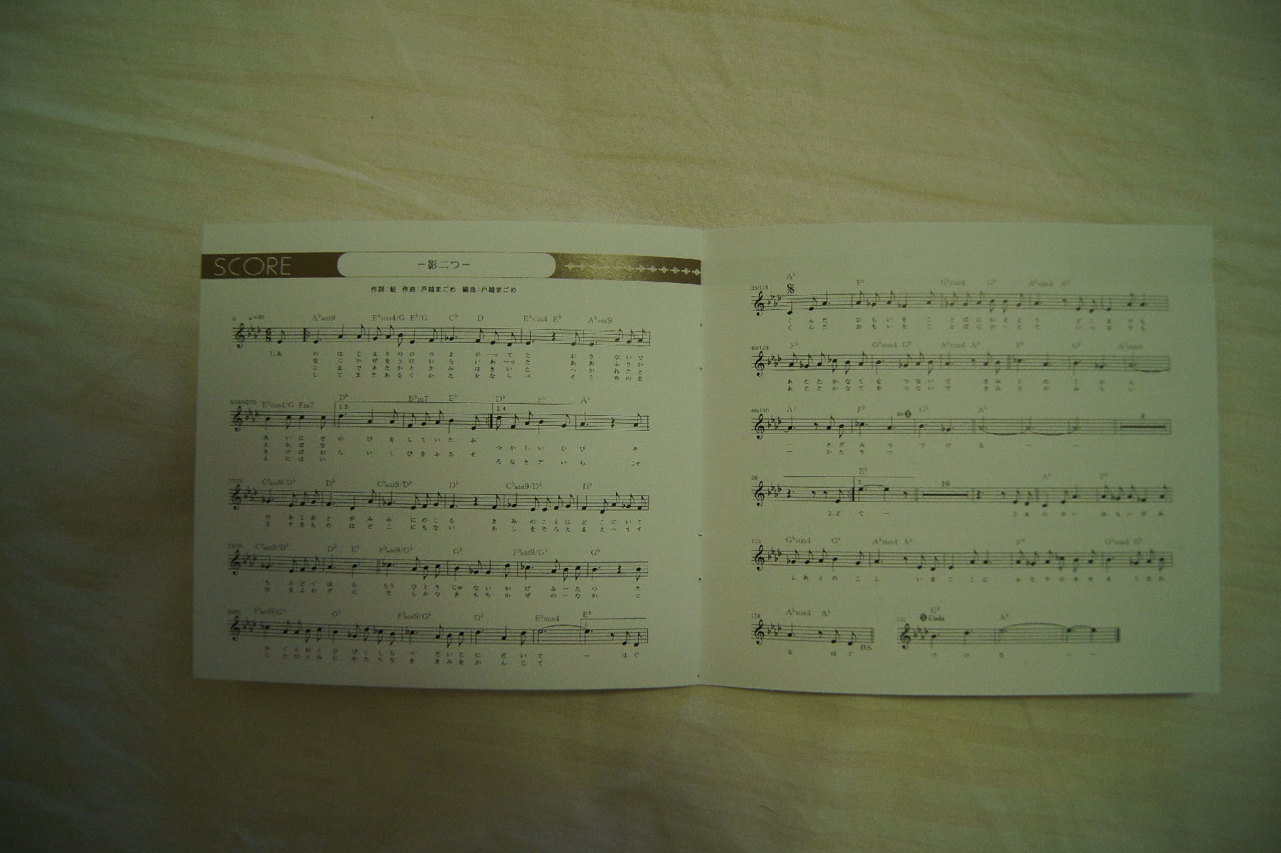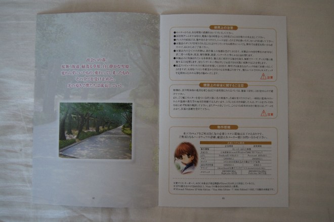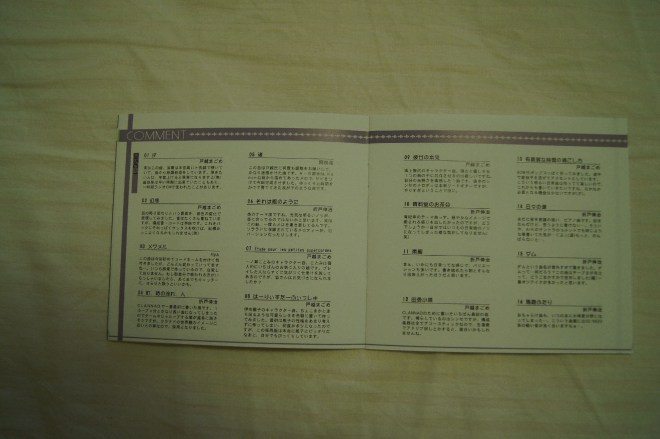 CD盒是三折式的,翻開第一面是ことみ的DISC 1和目錄,目錄背景是學校的徽章。