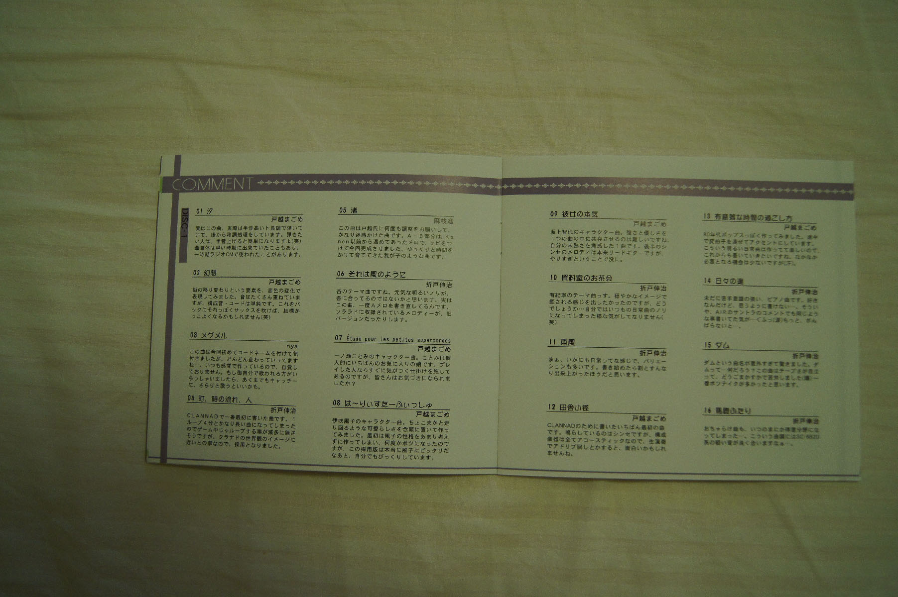 完全展開,渚和汐母女在DISC 2上,不過「汐」和「渚」這兩曲BGM卻在DISC 1上(笑)。雖然這麼說但是DISC 2上的曲目都很重要,這樣安排也可以理解。